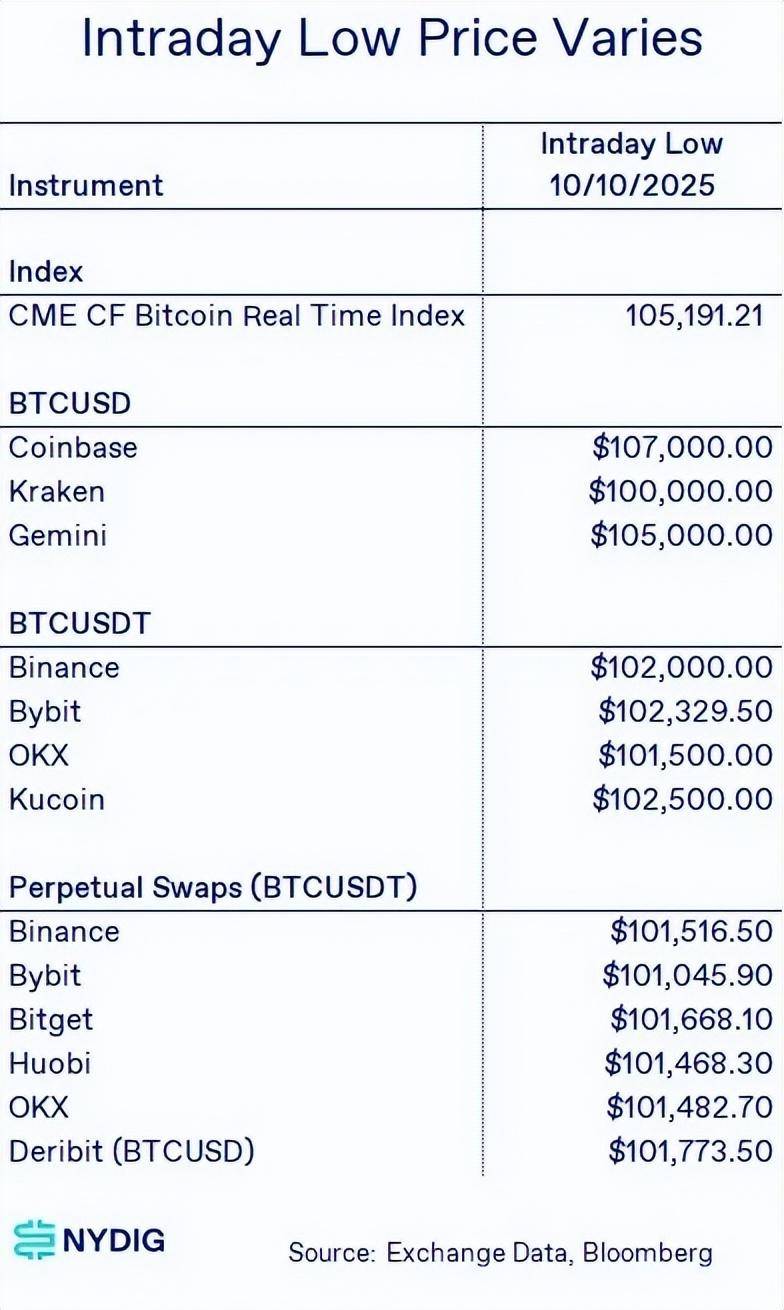 例如,加密抵押贷款高度依赖于准确且一致的定价。如下表所示,BTC 的盘中价格在主要市场之间最高相差可达 7%。这绝非小事——标记价格 7% 的波动可能触发追加保证金通知,甚至清算,具体取决于贷款机构所采用的报价来源。