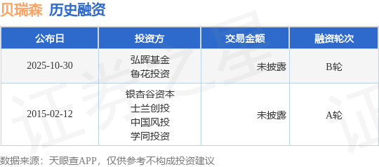 证券之星消息,根据天眼查APP于10月30日公布的信息整理,江阴贝瑞森生化技术有限公司B轮融资,融资额未披露,参与投资的机构包括弘晖基金,鲁花投资。