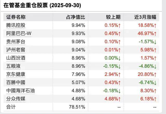 其三季度持仓结构显示,业绩的“正贡献”主要来自重仓的腾讯、阿里巴巴等互联网巨头;而合计持仓占比超过36%的贵州茅台、五粮液、泸州老窖等白酒股,则显著拖累了基金的整体表现。