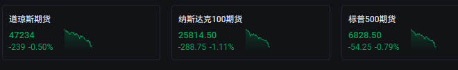标普500指数期货跌0.8%,纳指100指数期货跌1.1%。