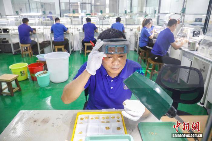 中新网贺州11月5日电(李军田 陶胜平 张广权)走进广西最大的黄金珠宝产业园——广西黄金珠宝产业园(以下简称:产业园),工匠手持激光雕刻笔精准雕琢黄金饰品,古法金、珐琅彩黄金、3D硬金、5G黄金等新工艺、新材料不断涌现,其产品热销海内外市场。