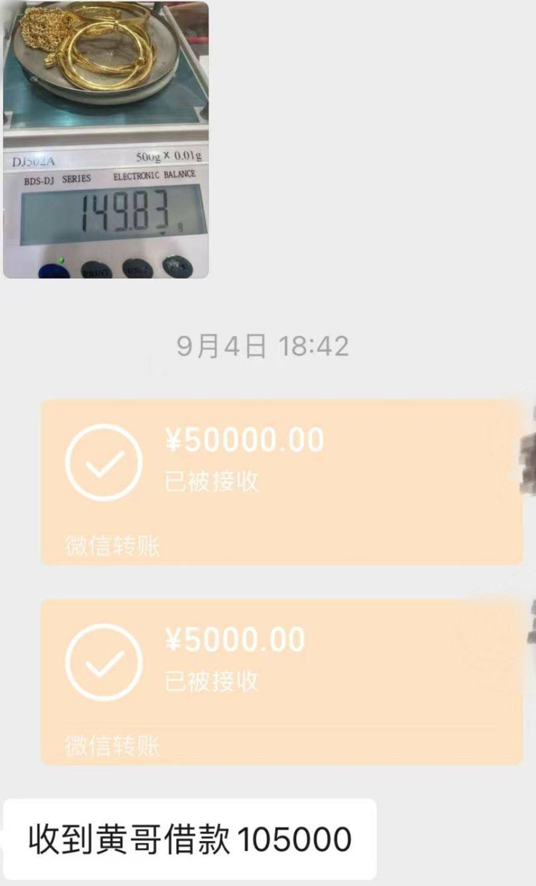 今年8月,外债缠身的小刘经人介绍,找到了从事黄金抵押换现生意的黄老板。小刘表示“自己开了多家水果店,平时现金流很稳,就是最近临时周转,用家里的黄金抵押几天”。