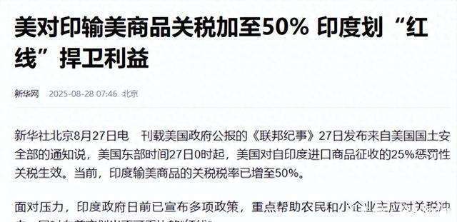 前言 2025年8月27日零点,全球的目光都聚焦在美国和印度这对曾经的“老伙伴”身上。美国对印度的纺织品、珠宝、仿制药等核心产品加征了50%的关税,这一幅度直接打破了全球贸易历史上税率的最高纪录。