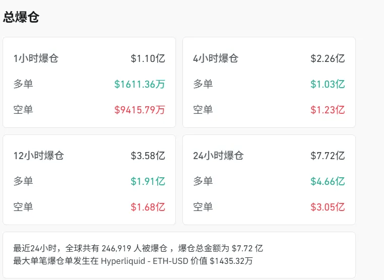 另外,加密货币市场也遭遇猛烈抛售,截至发稿比特币大跌超2%,跌破10万美元大关;以太坊大跌近4%,XRP大跌超4%。据Coinglass数据,最近24小时,全球共有超24万人被爆仓,爆仓总金额为7.72亿美元。