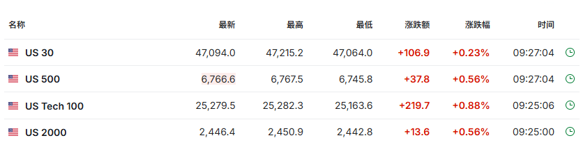 亚洲股市同样走高,其中韩国领涨,韩国首尔综合指数上涨2%,日本东证指数和澳大利亚S&P/ASX 200指数均录得上涨。