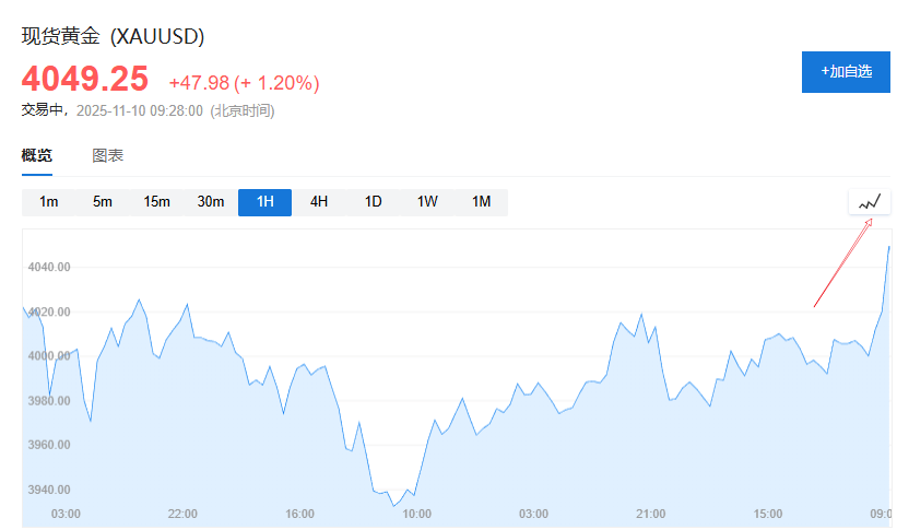 现货黄金涨幅扩大至超1%,目前报4049美元/盎司。现货白银日内涨1.2%。