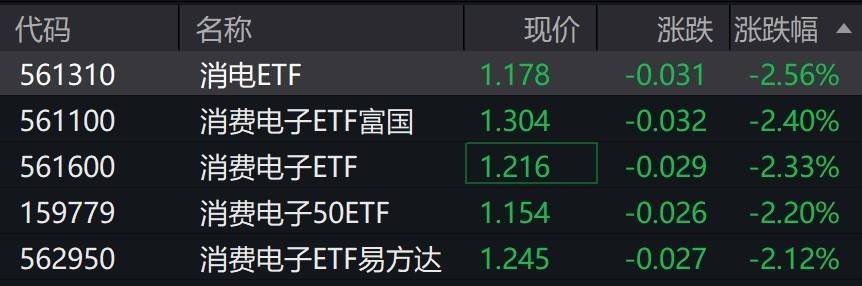 消费电子概念股走低,相关ETF跌超2%