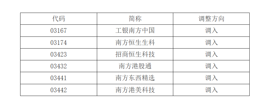 11月10日,6只在香港上市的ETF纳入“南向ETF通”。沪深交易所10月31日发布的公告显示,11月10日起有6只在香港上市的ETF调入沪港通、深港通下的港股通ETF名单,分别为工银南方中国、南方恒生生科、招商恒生科技、南方港股通、南方东西精选、南方港美科技。