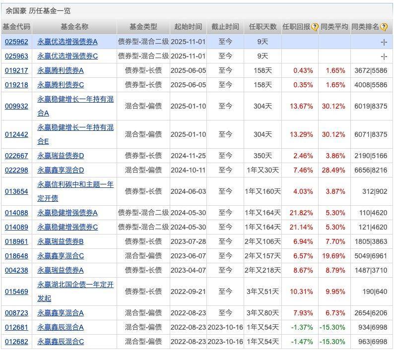 基金经理部分过往业绩: