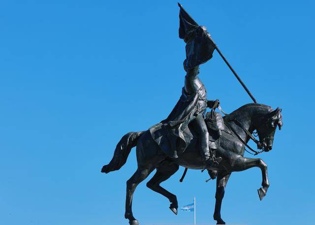 ↑圣马丁像与阿根廷国旗 。新华社记者 孟鼎博 摄