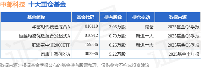 根据2025基金Q3季报公募基金重仓股数据,重仓该股的公募基金共3家,其中持有数量最多的公募基金为华富基金的华富时代锐选混合A。华富时代锐选混合A目前规模为0.45亿元,最新净值0.9768(11月7日),较上一交易日下跌2.28%,近一年上涨17.99%。该公募基金现任基金经理为王羿伟。王羿伟在任的基金产品包括:华富量子生命力混合A,管理时间为2021年10月29日至今,期间收益率为15.71%;华富竞争力优选混合A,管理时间为2022年10月21日至今,期间收益率为42.79%;华富天鑫灵活配置混合A,管理时间为2025年6月27日至今,期间收益率为17.49%;华富匠心明选一年持有混合A,管理时间为2025年6月27日至今,期间收益率为5.13%。