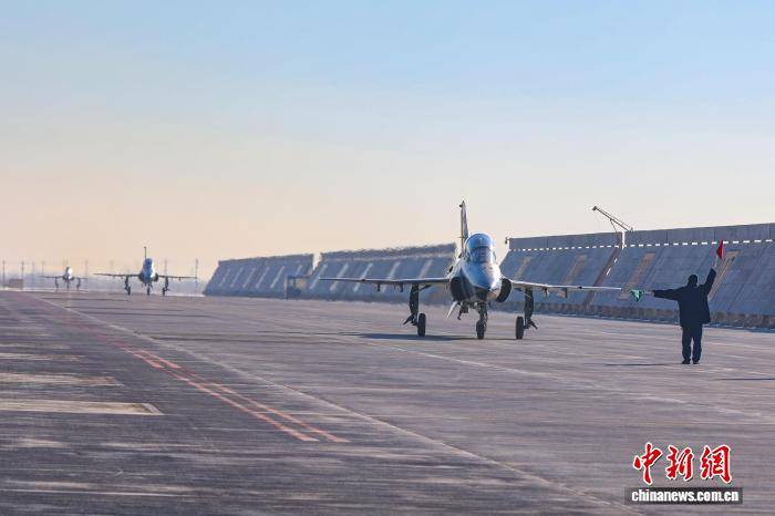 机场上战鹰列阵、引擎轰鸣,随着指挥员一声令下,数架战机依次滑出,掠过皑皑雪山直冲云霄,飞赴目标空域。