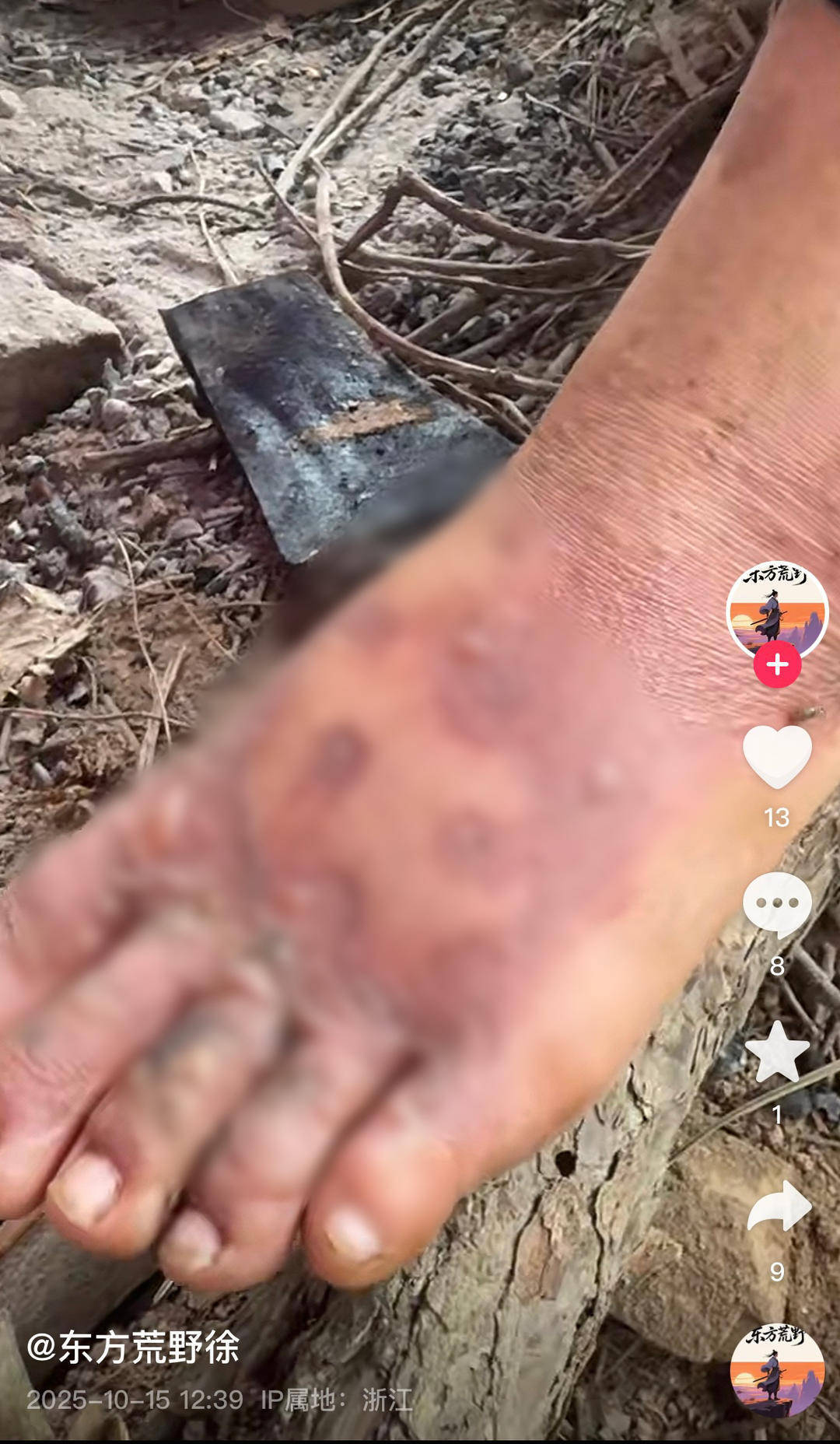 10月11日晚,女选手杨又串烧开水,不慎把盆踩翻,导致左脚被烫伤。“被烫伤后,特别痛,周围也没有工作人员和安全员。第二天有义工来拍摄,看到我的脚被烫伤了,就走了。第三天徐某过来,简单问了下情况,没有做任何处理。直到第四天,负责人发现我的伤情,告诉我比较严重,强制劝退了。”