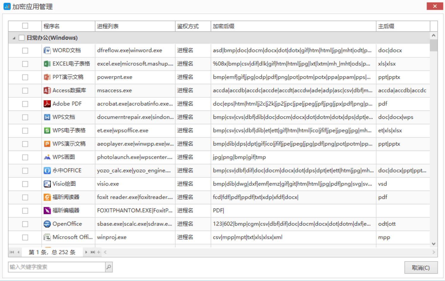 丰富加密程序库:加密程序库内置 230 余种加密程序,日常办公、图片设计、影音编辑等常用软件可直接加密,罕见、私密程序也能手动添加加密。