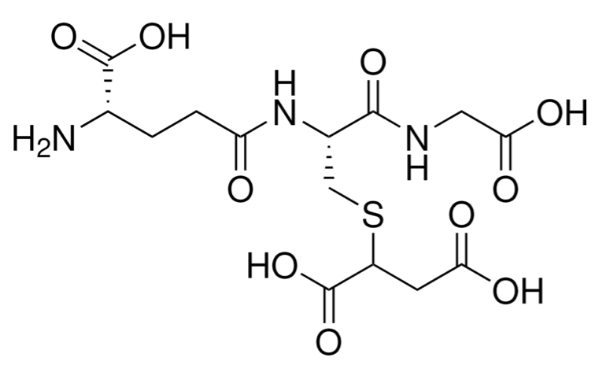 - 三字母序列(核心谷胱甘肽骨架):γ-Glu-Cys-Gly(γ 表示 Glu 与 Cys 通过 γ- 羧基连接,Cys 侧链修饰为 S-(1,2-dicarboxyethyl))