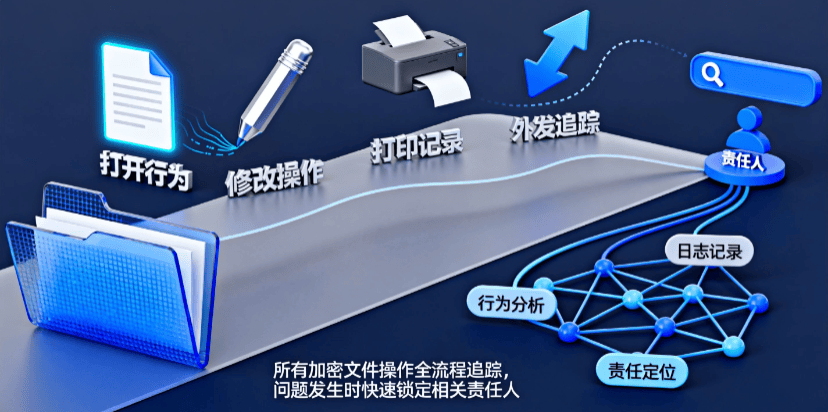 所有加密文件的打开、修改、打印、外发行为都有日志记录。出了问题,能迅速定位责任人。