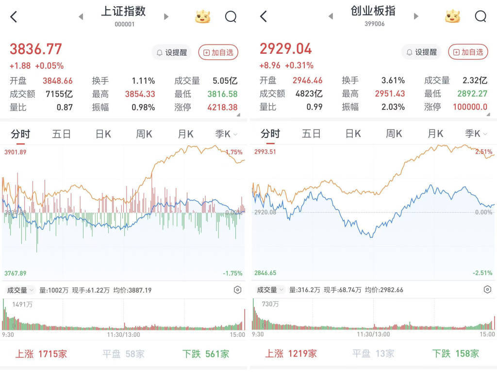 至收盘,上证综指涨0.05%,报3836.77点;科创50指数涨0.84%,报1296.6点;深证成指涨0.37%,报12585.08点;创业板指涨0.31%,报2929.04点。