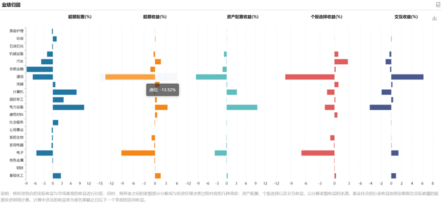 从Brinson归因模型来看,负超额收益主要源于通信与电子两大行业的配置偏差,分别对应CPO和PCB板块——而这两个板块恰是8-9月市场最炙手可热的领域。