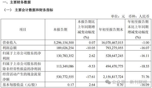 2025年前三季度,公司实现营业收入160.7亿元,同比再次减少1.00%;归母净利润5.29亿元,同比减少16.11%。