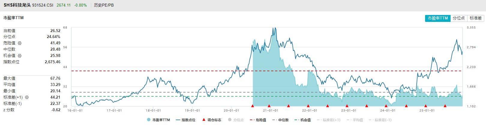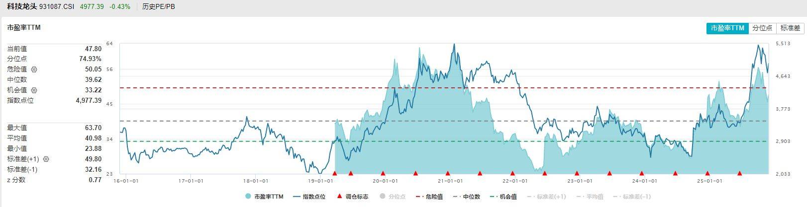 最后再对比两个指数目前的估值水平,中证沪港深科技龙头指数目前的市盈率TTM处于近十年25%分位以下,而中证科技龙头指数目前的市盈率TTM回升到了近十年70%分位以上。
