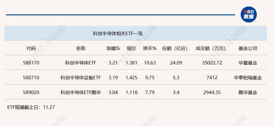 点评:科创半导体设备ETF(588710)、科创半导体ETF鹏华(589020)以及科创半导体ETF(588170)今日上午涨幅均超过3%,其中,科创半导体ETF(588170)份额较大,达到24.09亿份,其半日成交金额为3.5亿元。上述三只ETF均追踪的是上证科创板半导体材料设备主题指数。