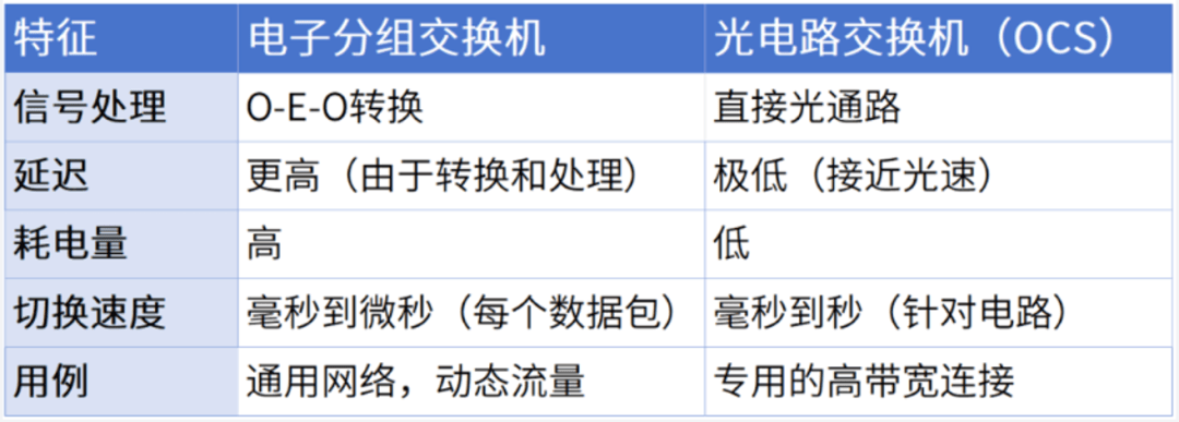 OCS的优势明显,一方面是避免了传统传输的光电转换,从而带来极低的耗电量和延迟。在速度上,光信号也跑的更快。缺点的话,就是技术还不够成熟,产业链配套不完善。