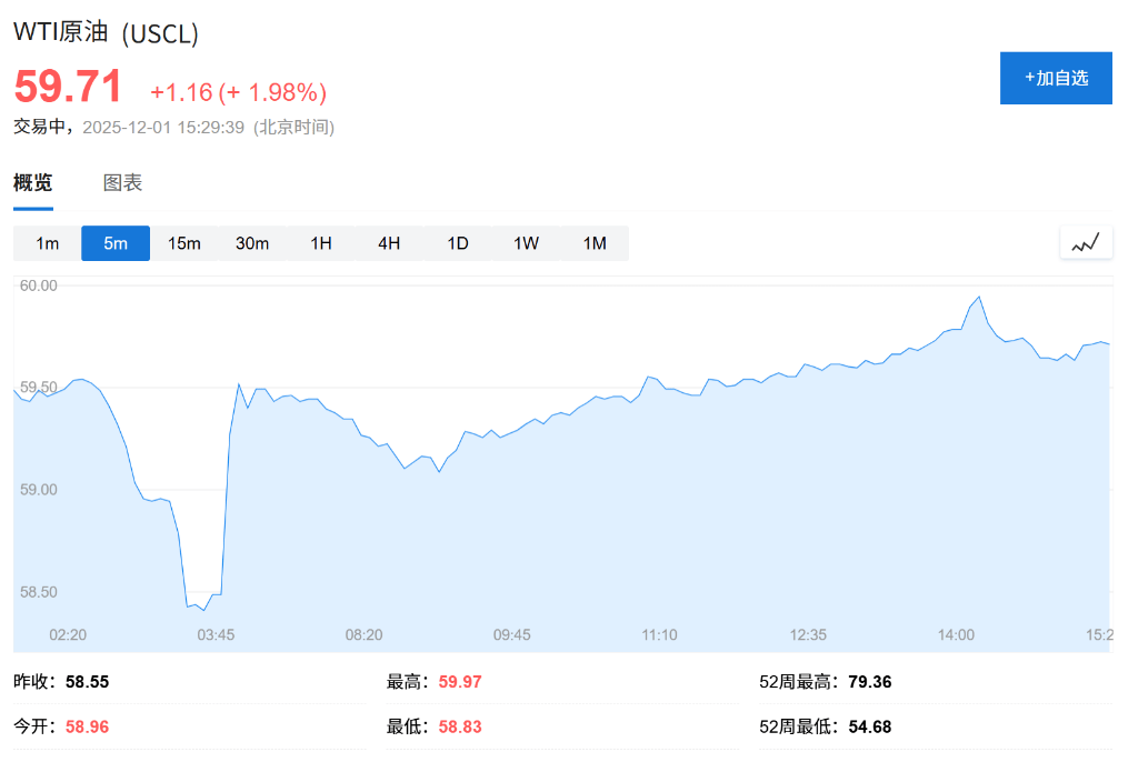 - 布伦特原油涨超2%,现报63.80美元/桶;WTI原油涨超2%,现报59.95美元/桶。