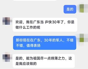 和一名“退伍军人”相谈甚欢