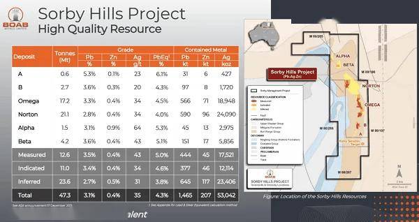 其中,Boab Metals Ltd (ASX股票代码:BML) 旗下位于西澳的Sorby Hills银铅项目即将在今年第四季度做出最终投资决定,上周Boab宣布为该项目成功锁定2.36亿澳元的债务融资支持。