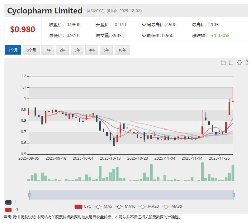 放射性制药公司Cyclopharm Ltd (ASX股票代码:CYC) 股价异动,周一飙涨22.79%。