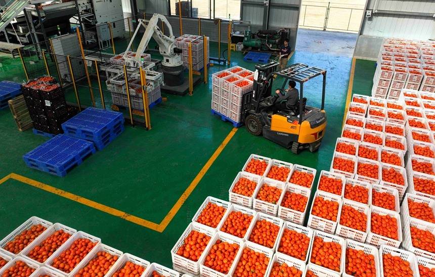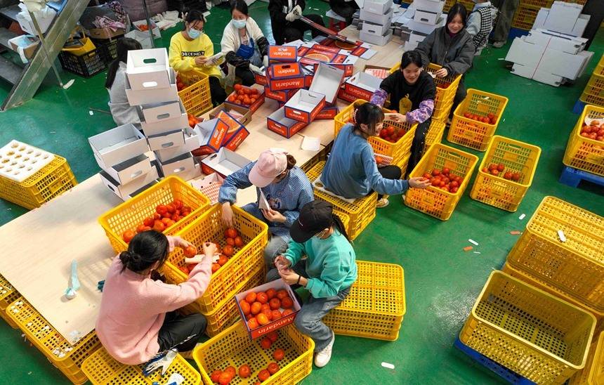 柑橘产业示范园区机械化、智能化包装生产。黄靖摄