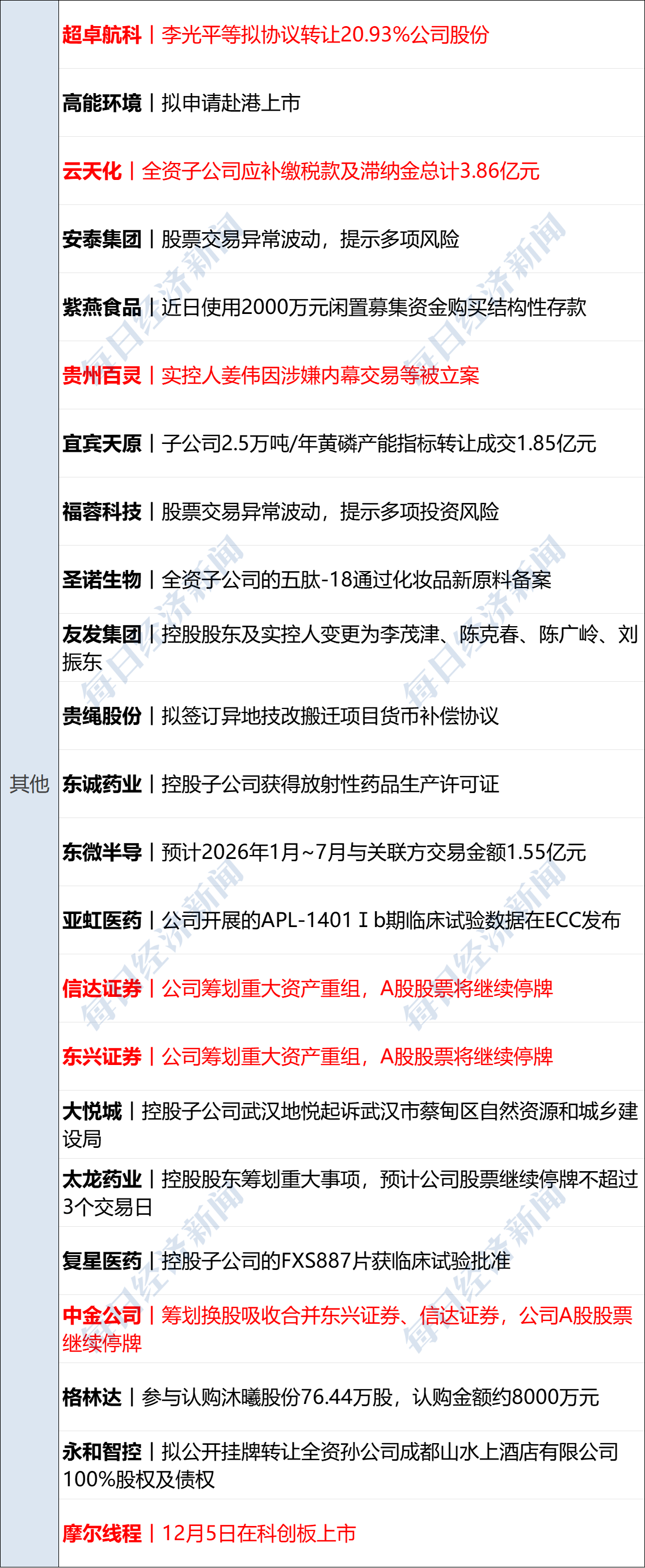 新泉股份(SH603179,股价68.48元,市值348.94亿元):12月3日晚,新泉股份公告称,公司实际控制人唐敖齐先生于2025年10月26日逝世,其持有的新泉投资51%股权中50%归属其配偶,50%为遗产。因朱玉琴放弃继承权,唐志华(唐敖齐之子)和唐美华(唐敖齐之女)共同继承唐敖齐先生的遗产,即唐志华继承新泉投资12.75%的股权,唐美华继承新泉投资12.75%的股权。同时,朱玉琴将其持有的新泉投资51%的股权无偿赠与唐志华和唐美华。本次权益变动后,公司实际控制人变更为唐志华先生。