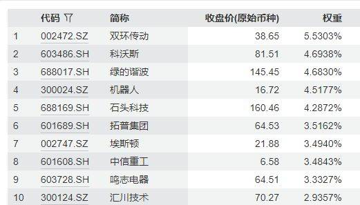 国证机器人产业指数主要权重股