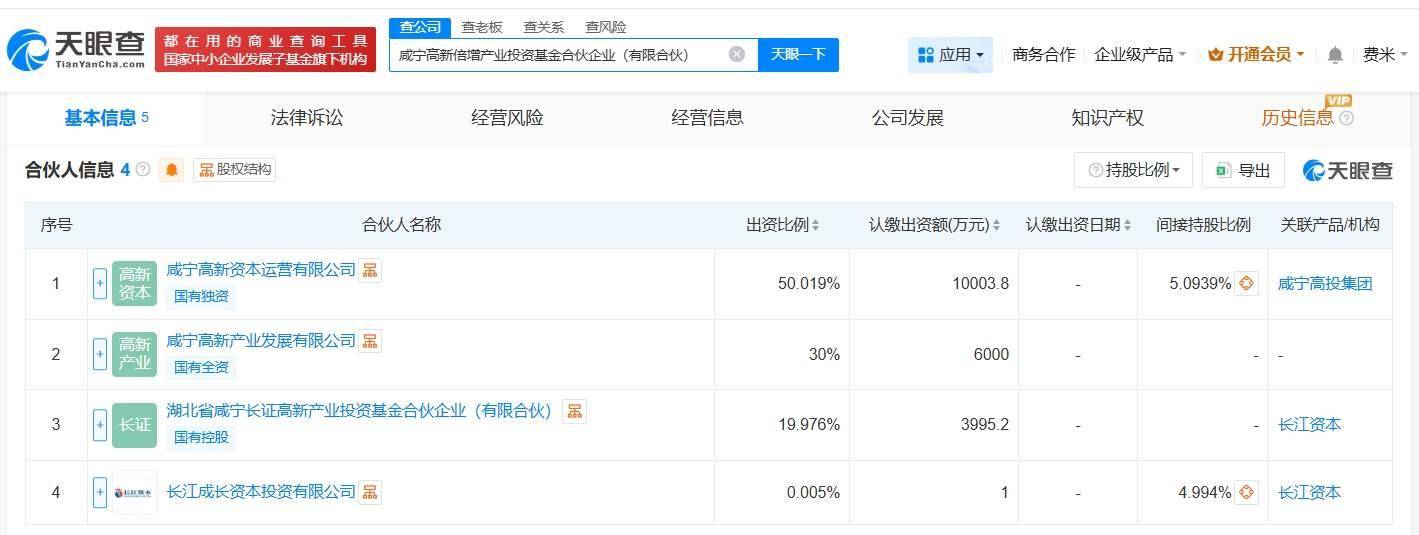 天眼查工商信息显示,近日,咸宁高新倍增产业投资基金合伙企业(有限合伙)成立,执行事务合伙人为长江成长资本投资有限公司,出资额2亿人民币,经营范围为创业投资,以私募基金从事股权投资、投资管理、资产管理等活动。合伙人信息显示,该基金由咸宁高新资本运营有限公司、咸宁高新产业发展有限公司、湖北省咸宁长证高新产业投资基金合伙企业(有限合伙)、长江成长资本投资有限公司共同出资。