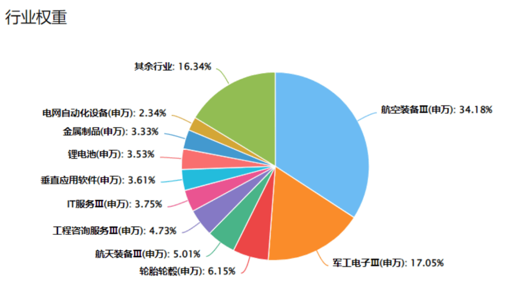 与国证航天航空行业指数相比,该指数相对分散。航空装备约占34.2%,军工电子、汽车零部件等其他行业合计占比高,覆盖工业、信息技术、可选消费等多个领域。