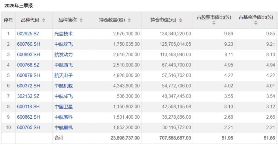国证航天航空行业指数集中覆盖军工领域核心公司。