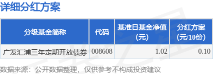 证券之星消息,12月5日发布《广发汇浦三年定期开放债券型证券投资基金分红公告》。本次分红为2025年度的第2次分红。公告显示,本次分红的收益分配基准日为11月11日,详细分红方案如下: