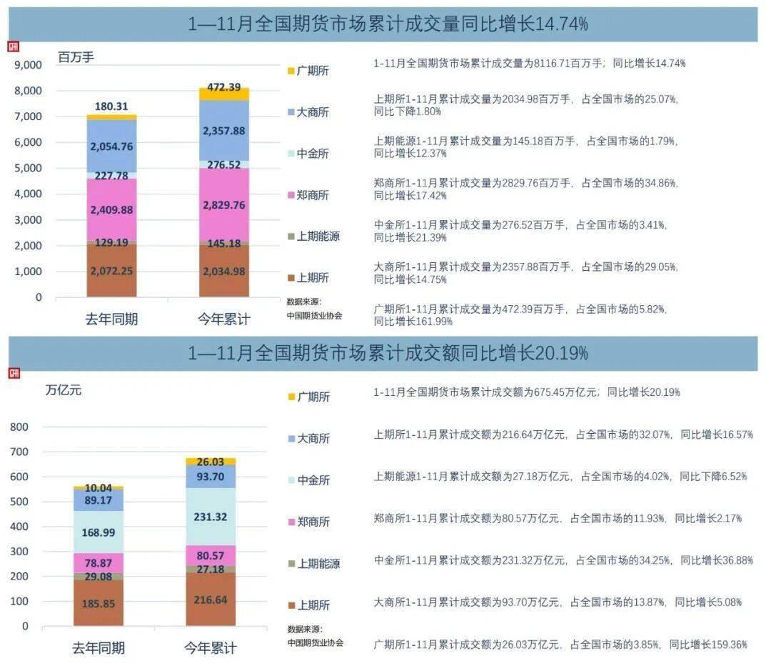 值得注意的是,今年前11个月期货市场累计成交量和成交额均已超过去年全年水平。