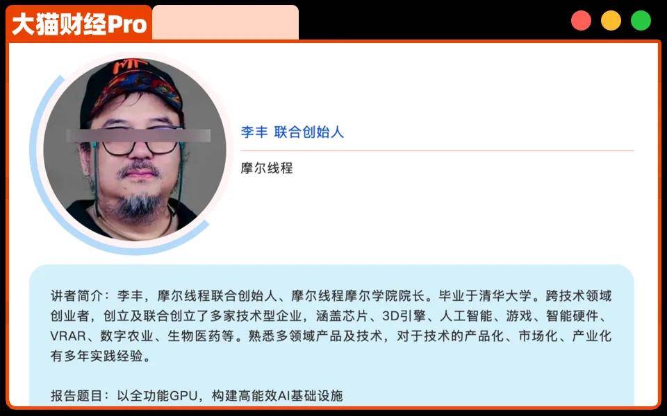 在外参会演讲,李丰的头衔是“摩尔线程联合创始人、摩尔学院院长”。