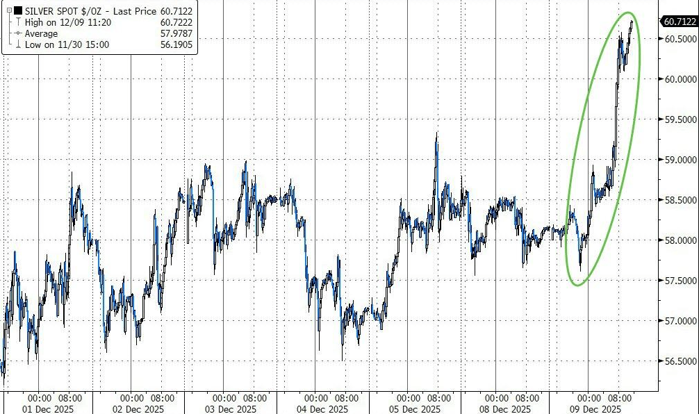 受美联储降息预期升温、全球供应紧张加剧以及被列入美国关键矿产清单等多重因素推动,白银价格周二强势突破每盎司60美元关口,创下历史新高。今年以来,白银涨幅已接近110%,表现远超黄金和铂金。