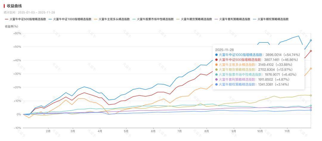 根据火富牛统计的私募策略数据,今年以来主观多头精选指数上涨33.88%,单独拉出来看其实还可以,但和量化一比又显得没有性价比: