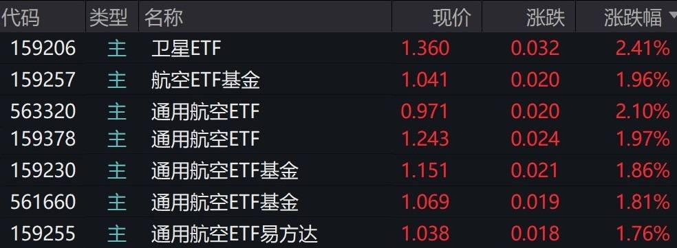 受盘面影响,卫星、通用航空相关ETF涨约2%。
