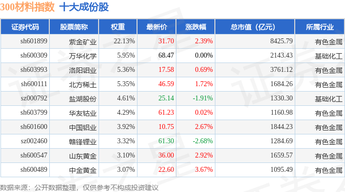 证券之星消息,12月12日,300材料(000909)指数报收于3738.31点,涨0.94%,成交510.17亿元,换手率1.28%。当日该指数成份股中,上涨的有23家,中金黄金以3.67%的涨幅领涨,下跌的有6家,天齐锂业以2.75%的跌幅领跌。