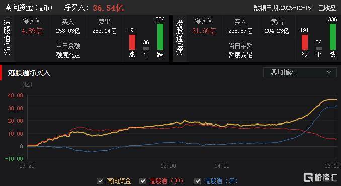 今日,南向资金净买入36.54亿港元,其中港股通(沪)净买入4.89亿港元,港股通(深)净买入31.66亿港元。