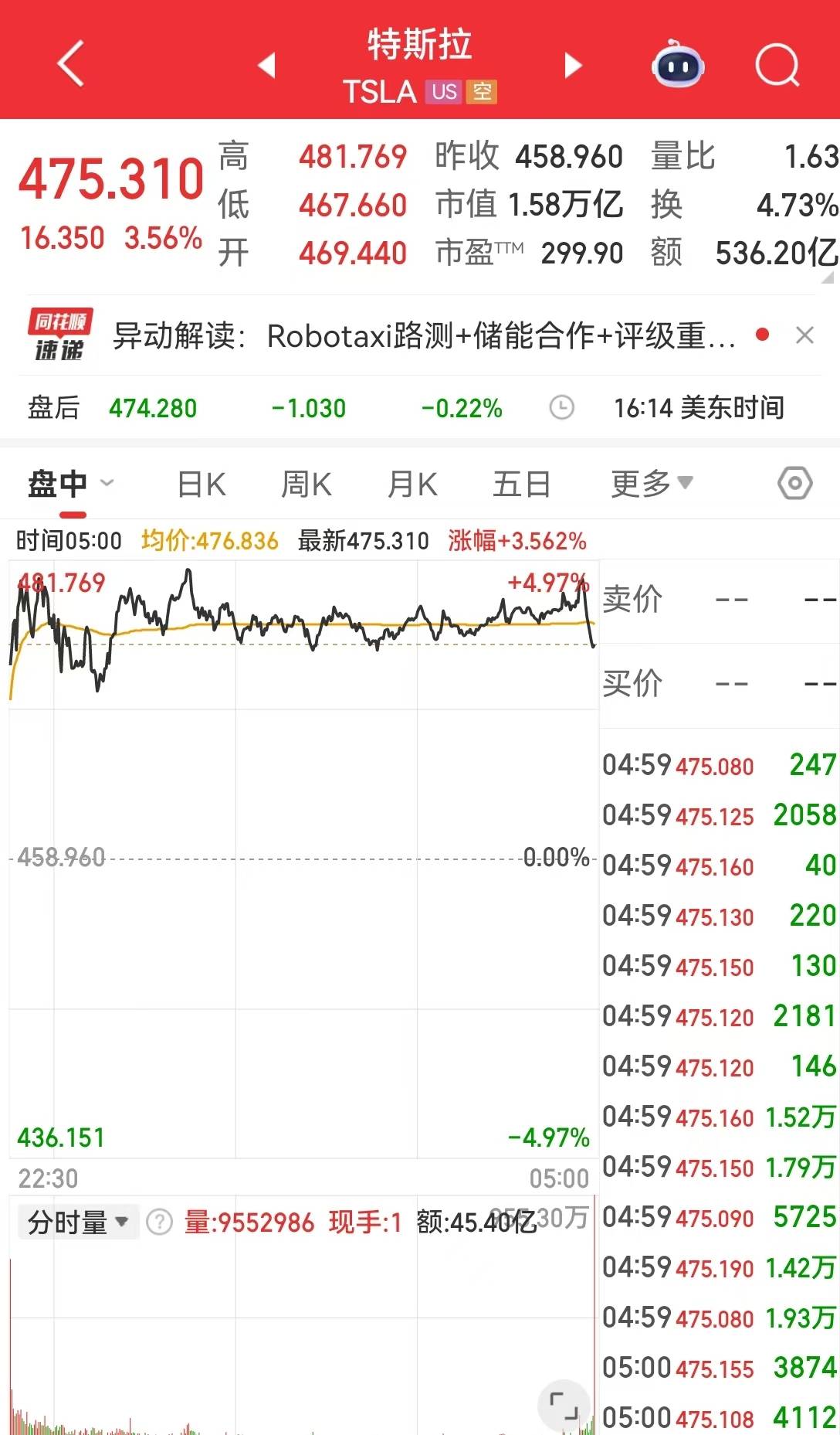 博通跌超5%;苹果、亚马逊涨超1%;特斯拉涨超3%,市值一夜增加537亿美元(约合人民币3786亿元)。