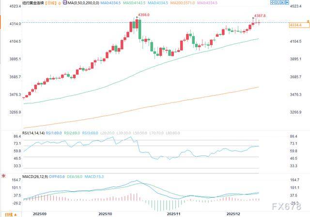 技术面来看,2月黄金期货多头的下一个上行目标是收盘价突破关键阻力位——合约历史高点4433.00美元/盎司。空头的近期下行目标是推动期货价格跌破关键技术支撑位4200.00美元/盎司。第一阻力位见于今日高点4367.90美元/盎司,随后是上周高点4387.80美元/盎司;第一支撑位为隔夜低点4297.40美元/盎司,其次是4250.00美元/盎司。