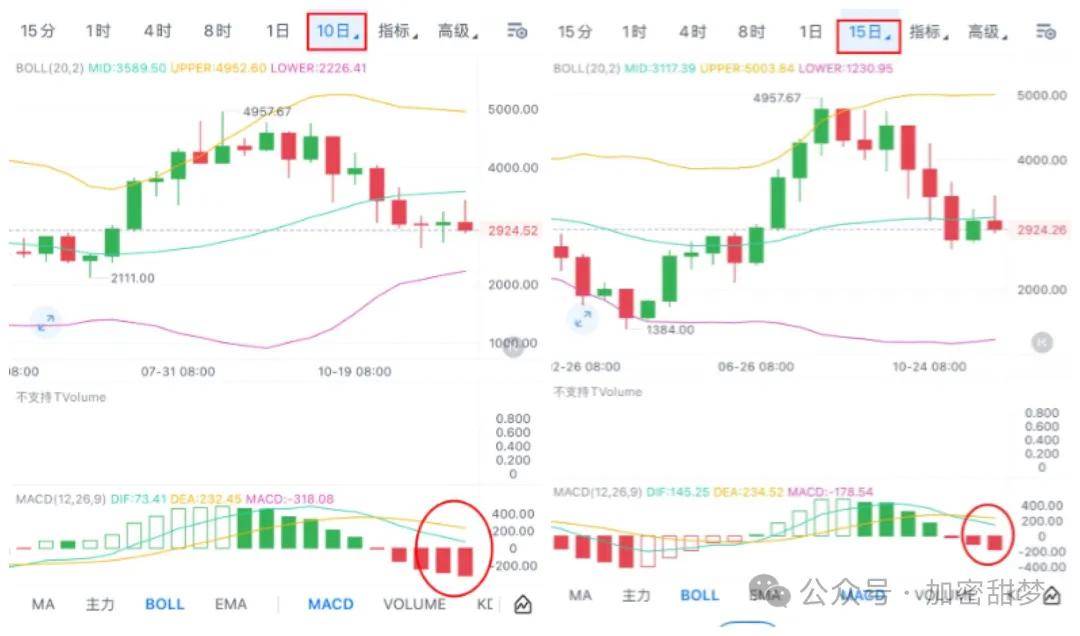 当前处于月线调整周期中的10-15日线级别回调阶段。10日线回调未结束,MACD快线即将归零,触零轴时或加速下跌;EMA7/30/52全破,短期支撑仅布林下轨2228。