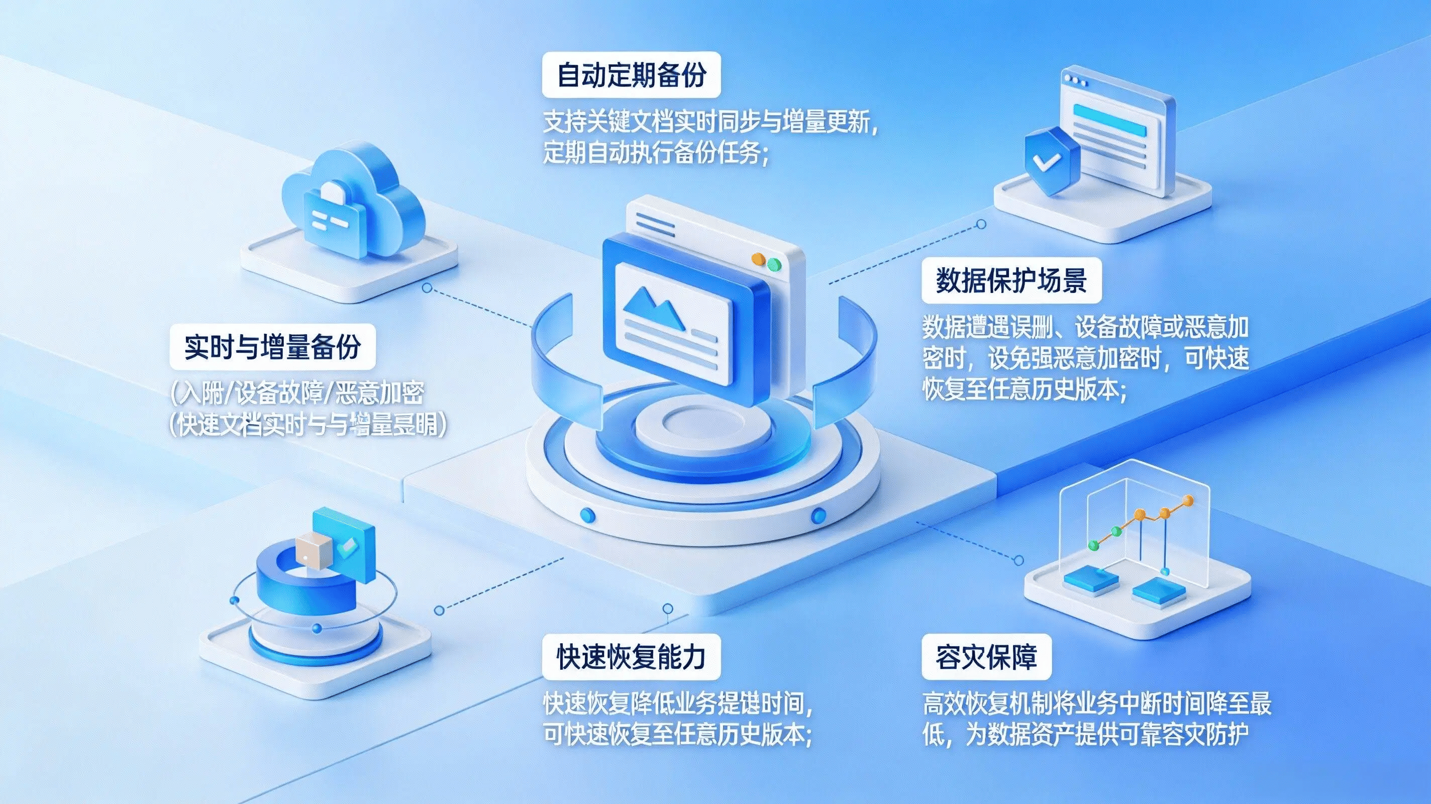提供增量备份与差异备份双模式,支持本地NAS与云端(阿里云/AWS)同步存储。通过版本对比功能可快速回滚至指定时间节点,配合加密校验机制确保备份数据完整性。