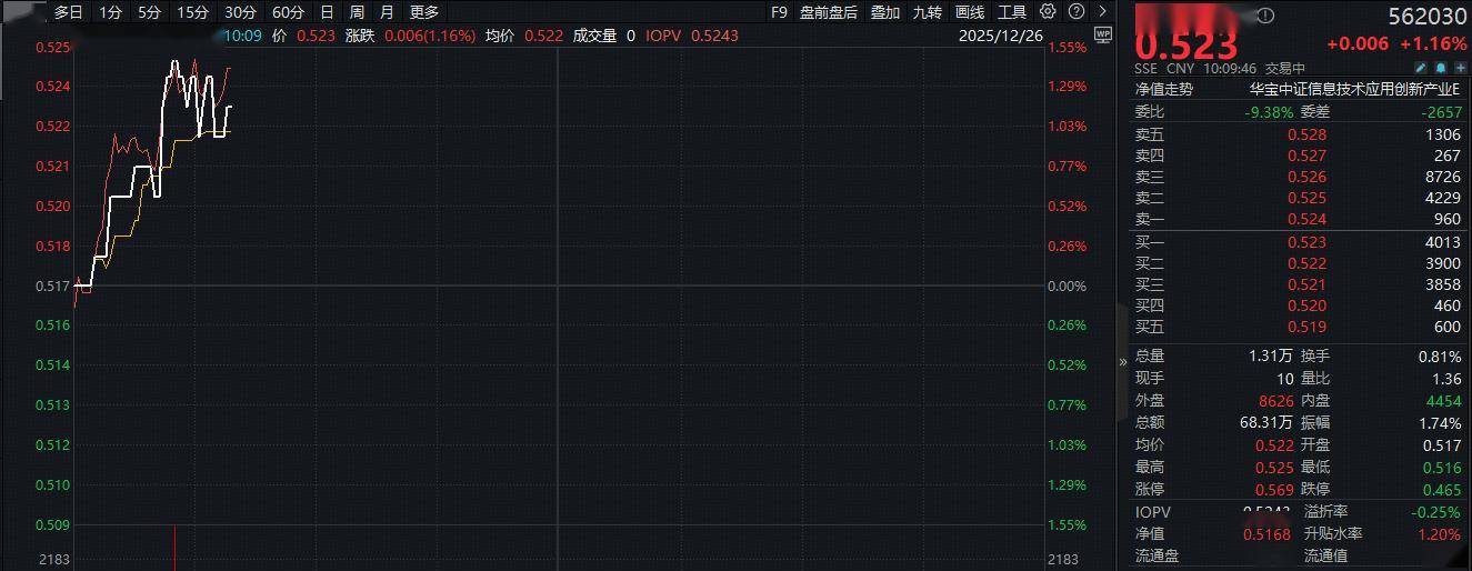 今日(12月26日)聚焦信息技术自主可控领域的信创ETF基金(562030)继续活跃,场内涨幅一度上探1.55%,现涨1.16%,冲击日线3连阳!