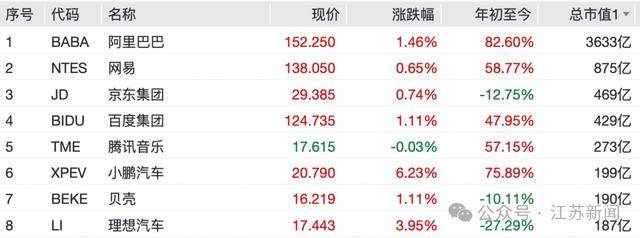 中概股多数上涨,纳斯达克中国金龙指数涨0.71%。热门中概股方面,小鹏汽车涨超6%,叮咚买菜涨逾5%,蔚来涨超4%,理想汽车涨近4%。跌幅方面,小马智行跌超4%,霸王茶姬跌逾2%
